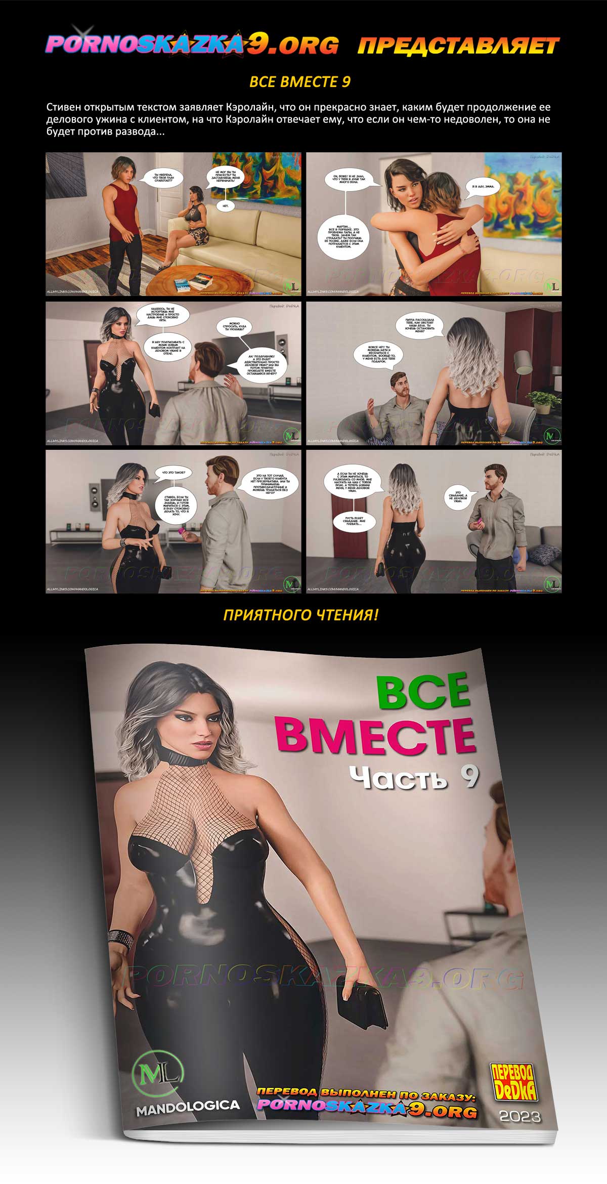 Порно комикс «Все вместе. Часть 9.» Стивен заявляет Кэролайн, что он прекрасно знает, каким будет продолжение ее делового ужина с клиентом, на что Кэролайн отвечает ему, что если он чем-то недоволен, то она не будет против развода…